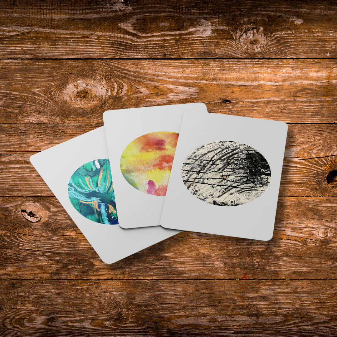 Die gerade für jetzt richtige Karte für sich auszuwählen und zu zeigen, kann ein Trost sein – auch für die Menschen, die uns nahe stehen, um uns herum sind. Es darf sein, wie wir uns fühlen. Es ist okay, auch nicht okay zu sein.